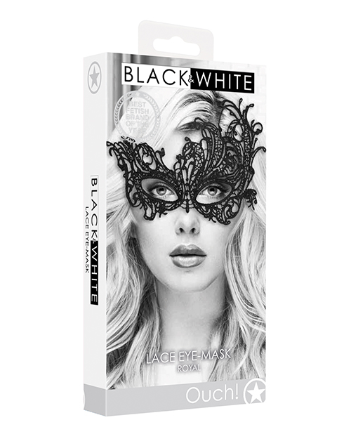 Shots Ouch Black & White Lace Eye Mask - Royal Black