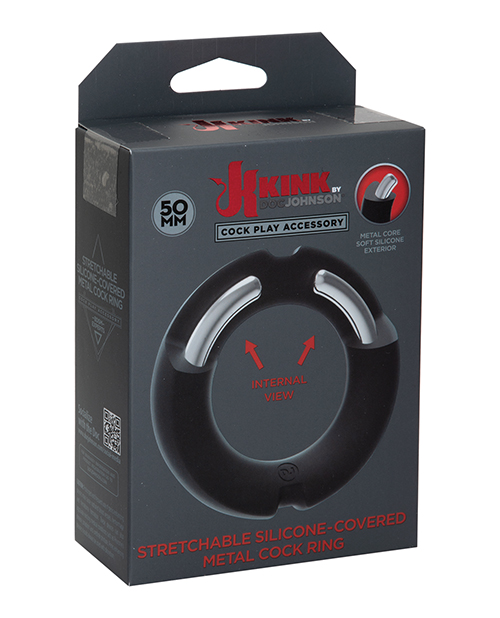 Kink Hybrid Silicone Covered Metal Cock Ring - 50 mm Black