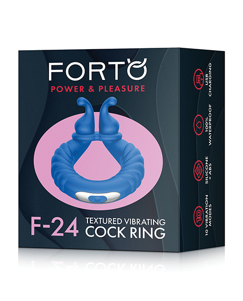 Forto F-24 Textured Vibrating Cock Ring - Blue