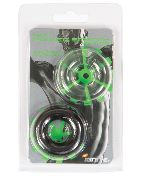 Ignite Power Stretch Donut Cock Ring - Black Pack of 2