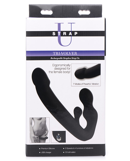 Strap U Tri-Volver 7x Vibrating Strapless Strap on - Black