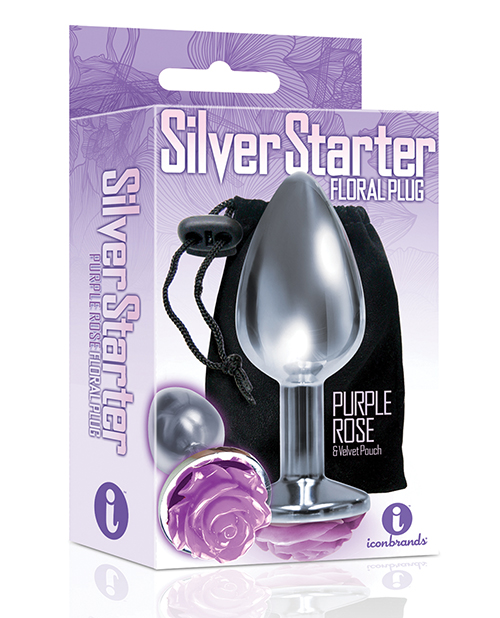 The 9's The Silver Starter Rose Floral Stainless Steel Butt Plug - Purple
