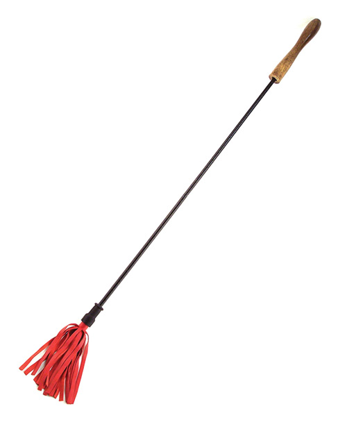 Rouge Leather Riding Crop w/Rounded Wooden Handle - Red