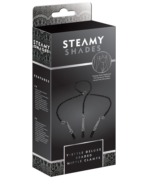Steamy Shades Y-Style Deluxe Beaded Nipple Clamps - Black/Silver
