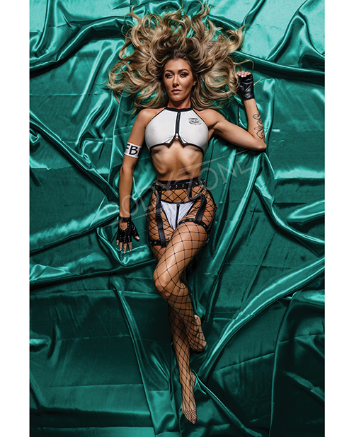 3 pc CEO Open Cup Bodysuit w/Attached Garterstraps, Bottom & Collar w/Tie Blk/Wht MD