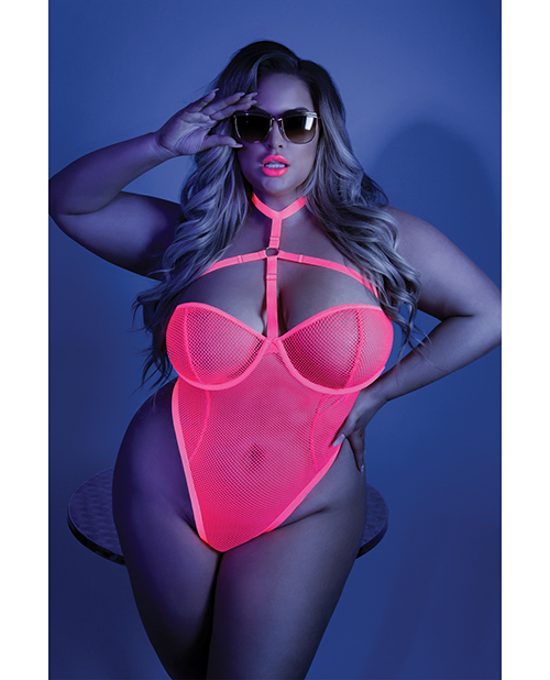 Sheer Save Your Tears Studded Halter Teddy w/Net Side Panels & Attached Stockings Black QN
