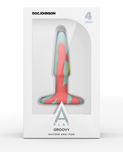 A Play 4" Groovy Silicone Anal Plug - Multicolor/Yellow