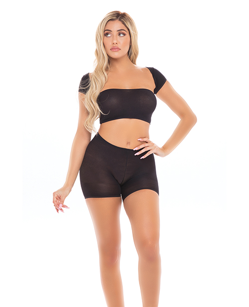 Pink Lipstick On Your Mind Bandeau w/Shoulders & Short Black O/S
