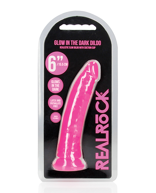 Shots RealRock 6" Slim Dildo Glow in the Dark - Neon Pink