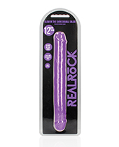 Shots RealRock 12" Double Dong Glow in the Dark - Neon Purple